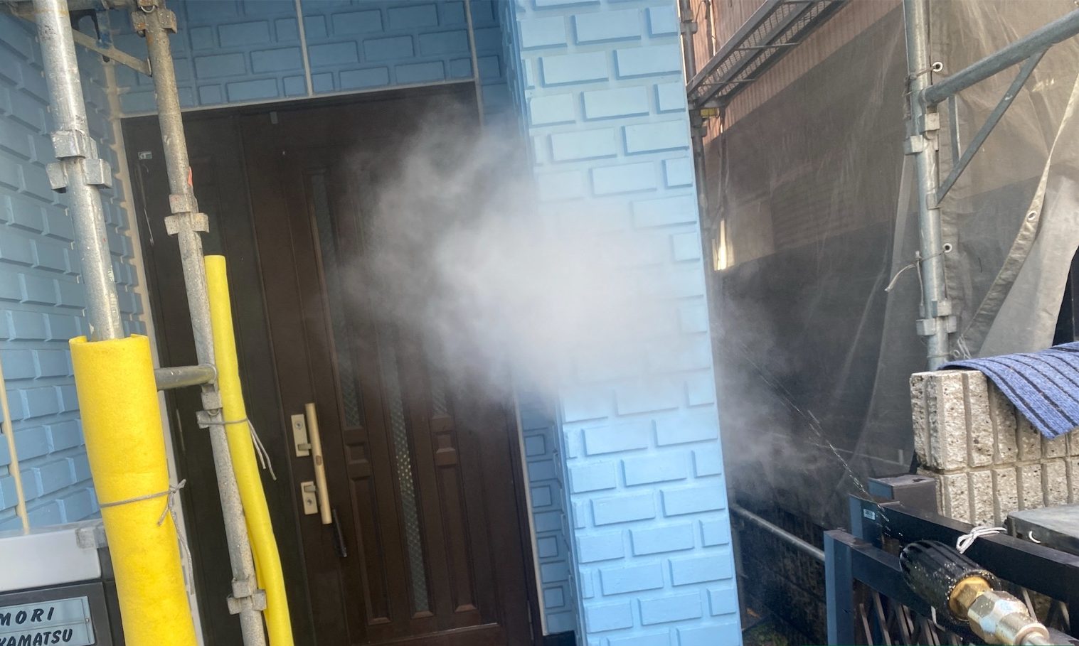 外壁洗浄 施工中