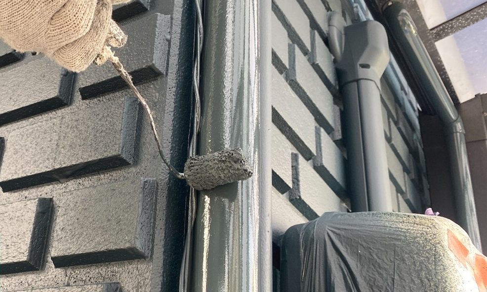 竪樋上塗り2回目施工中