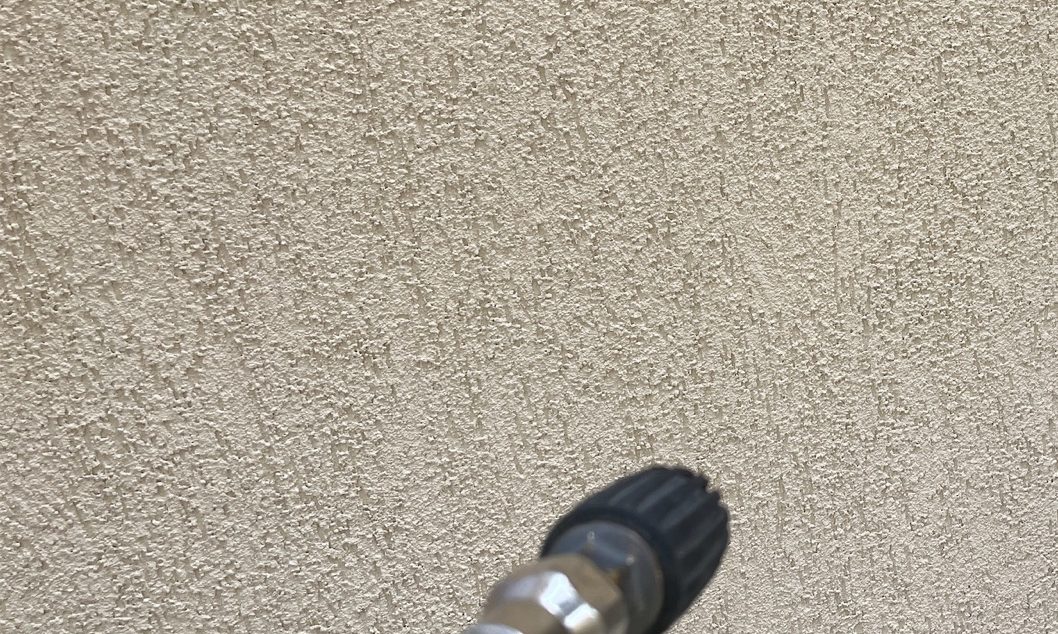 外壁はリシン吹付仕上げで凹凸が多く、経年劣化により色褪せや汚れが気になる状態でした。特に凹凸の部分では汚れがたまりやすく、今後の耐久性を考えても早めのメンテナンスが望ましい状況でした。