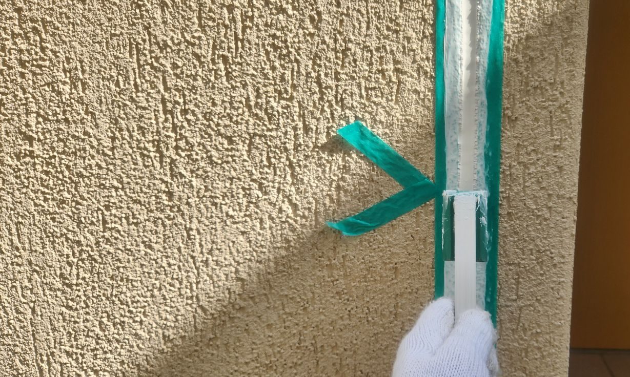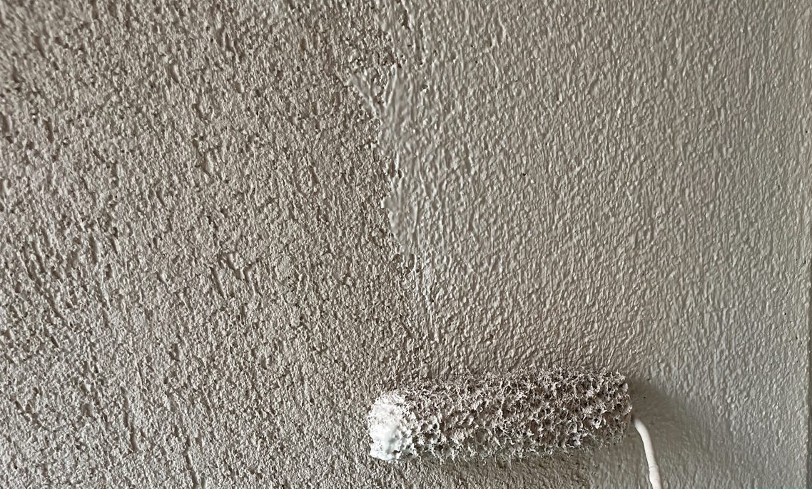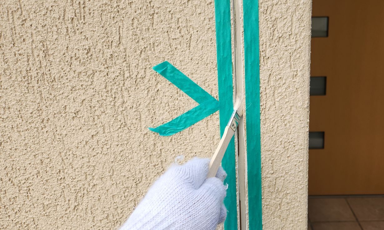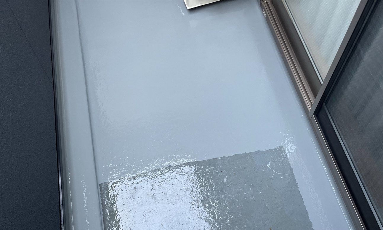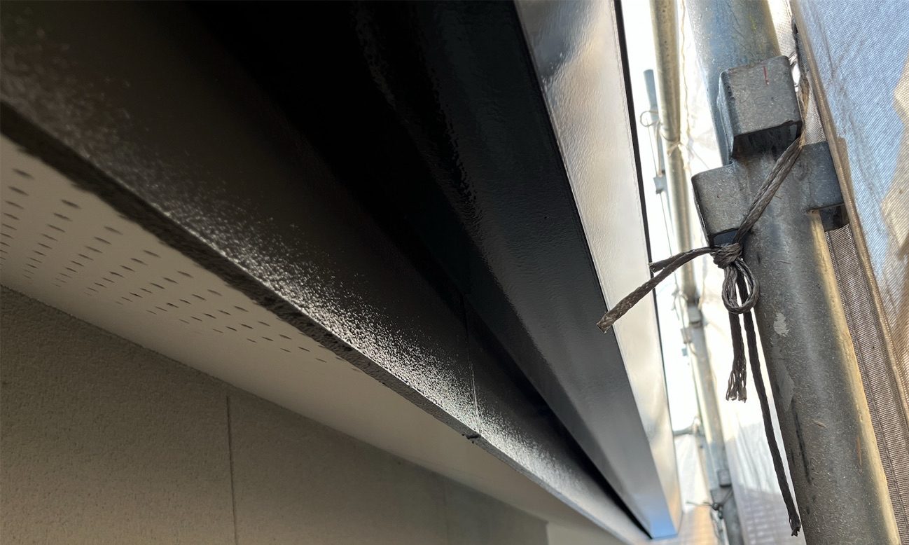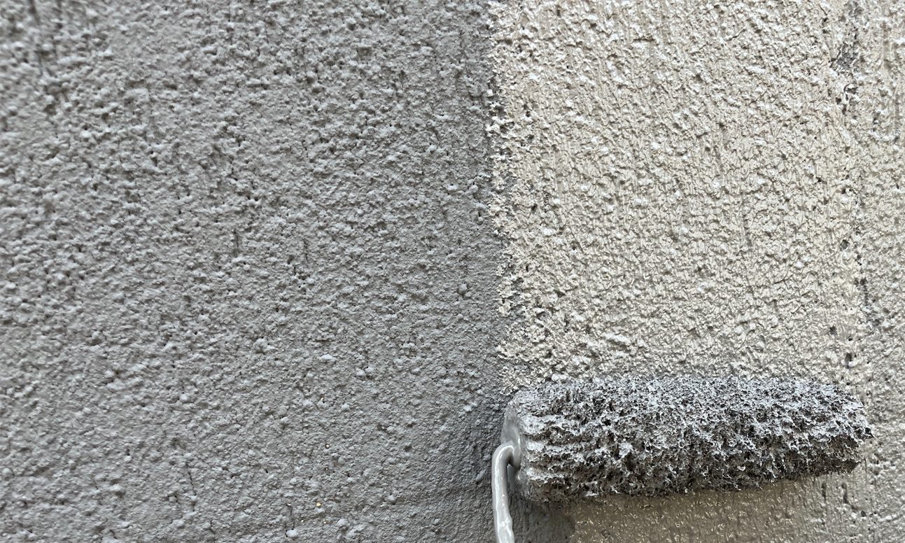 リシン吹付の外壁は凹凸が多いため、塗り残しが出やすい素材です。そのため職人が丁寧に一筆一筆塗り重ね、細かい部分までチェックを徹底しました。さらに、凹凸によりラインが出にくい難しい外壁でしたが、美しい仕上がりとなるよう工夫しながら進めました。