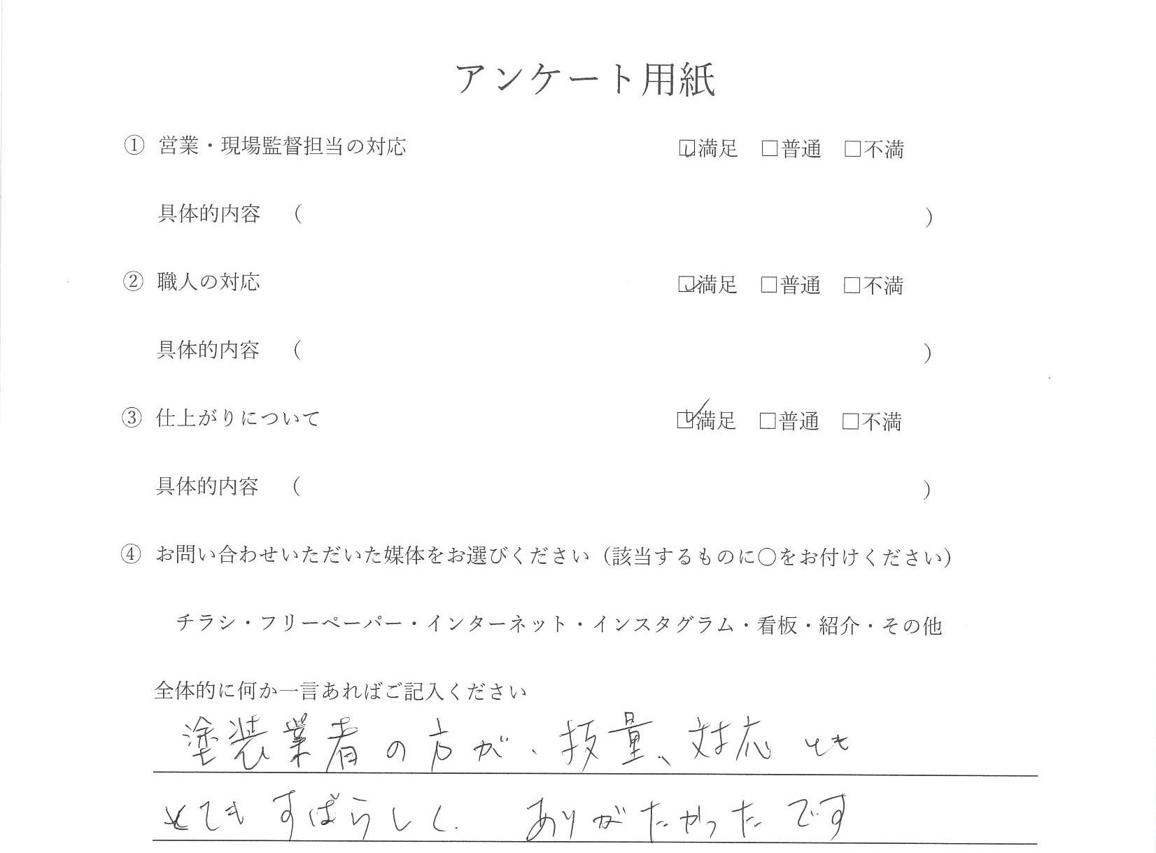 塗装業者の方が、技量、対応とも とてもすばらしく、ありがたかったです。