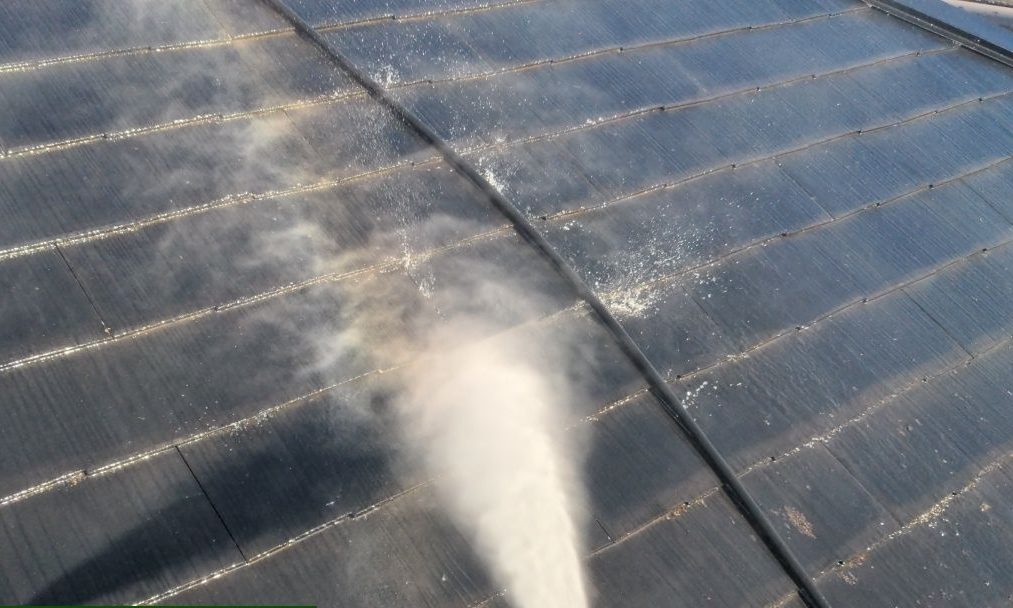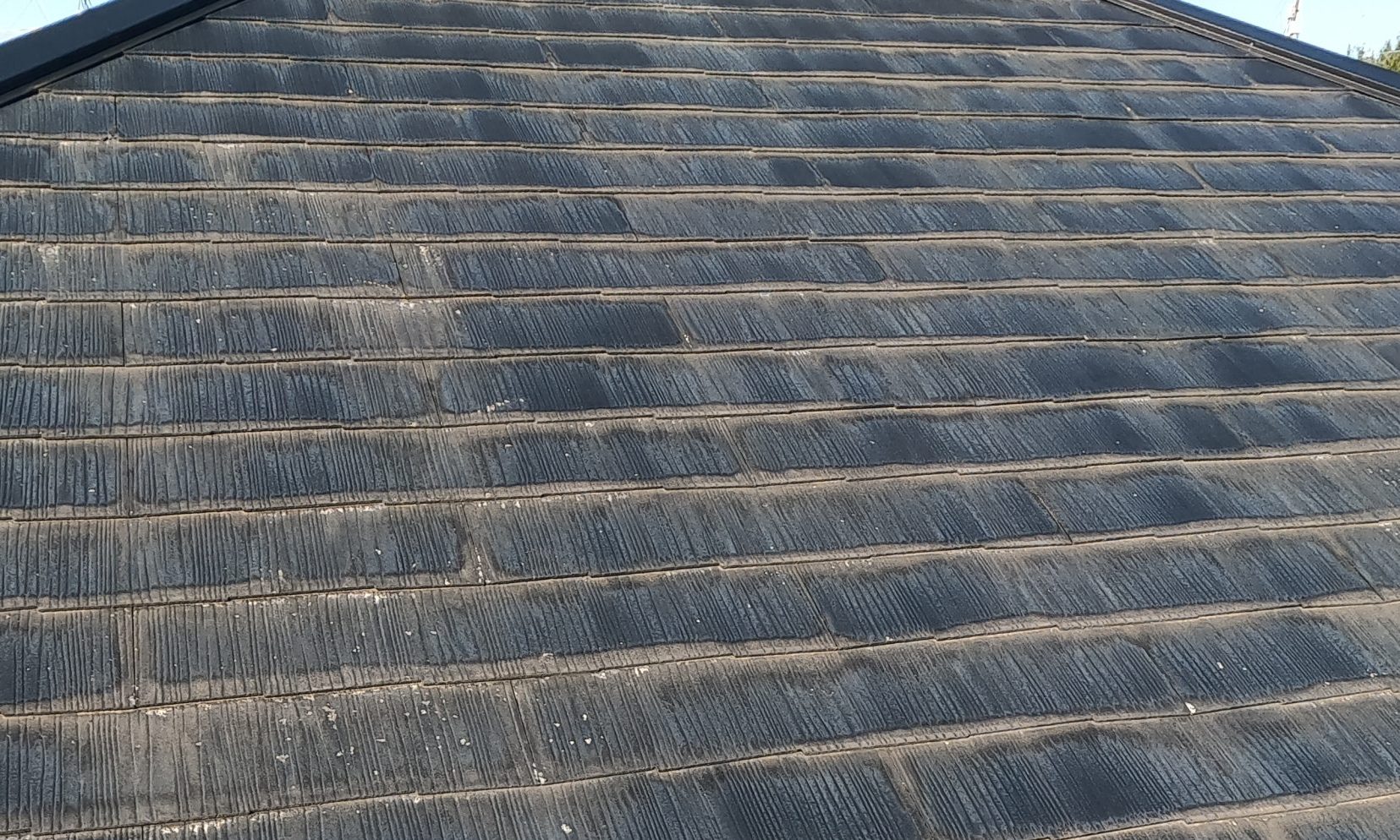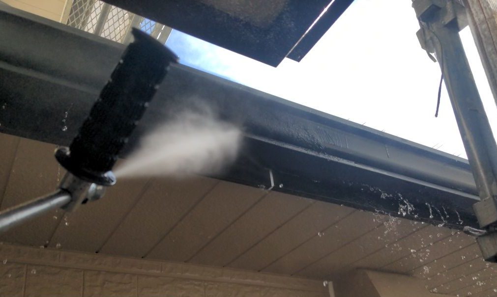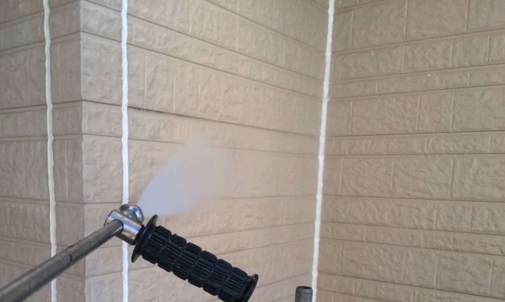 施工にあたっては、まず高圧洗浄で外壁や屋根に付着していた汚れやコケを徹底的に洗い流しました。