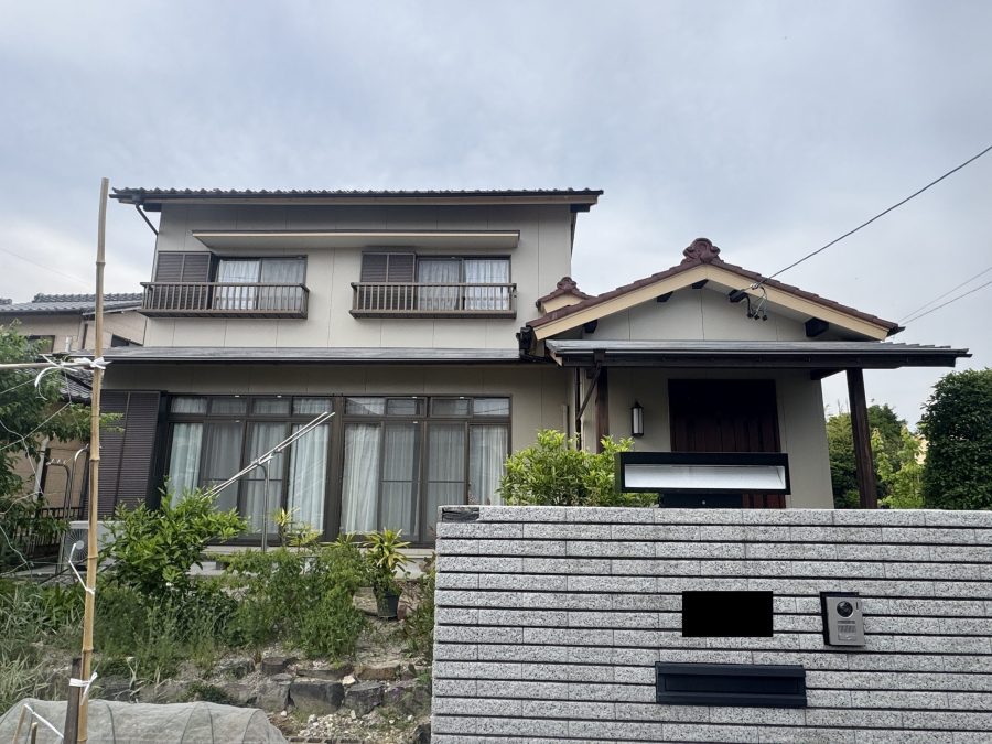 施工前は全体的にくすんだ印象でしたが、施工後は、外壁が明るくなり和風住宅の趣を残しつつも上品で清潔感のある外観に生まれ変わりました。特に、サンドベージュの柔らかい色合いが瓦との相性も良く、昔ながらの家だけど、どこか新しさもあるねとご近所様からも好評でした。
