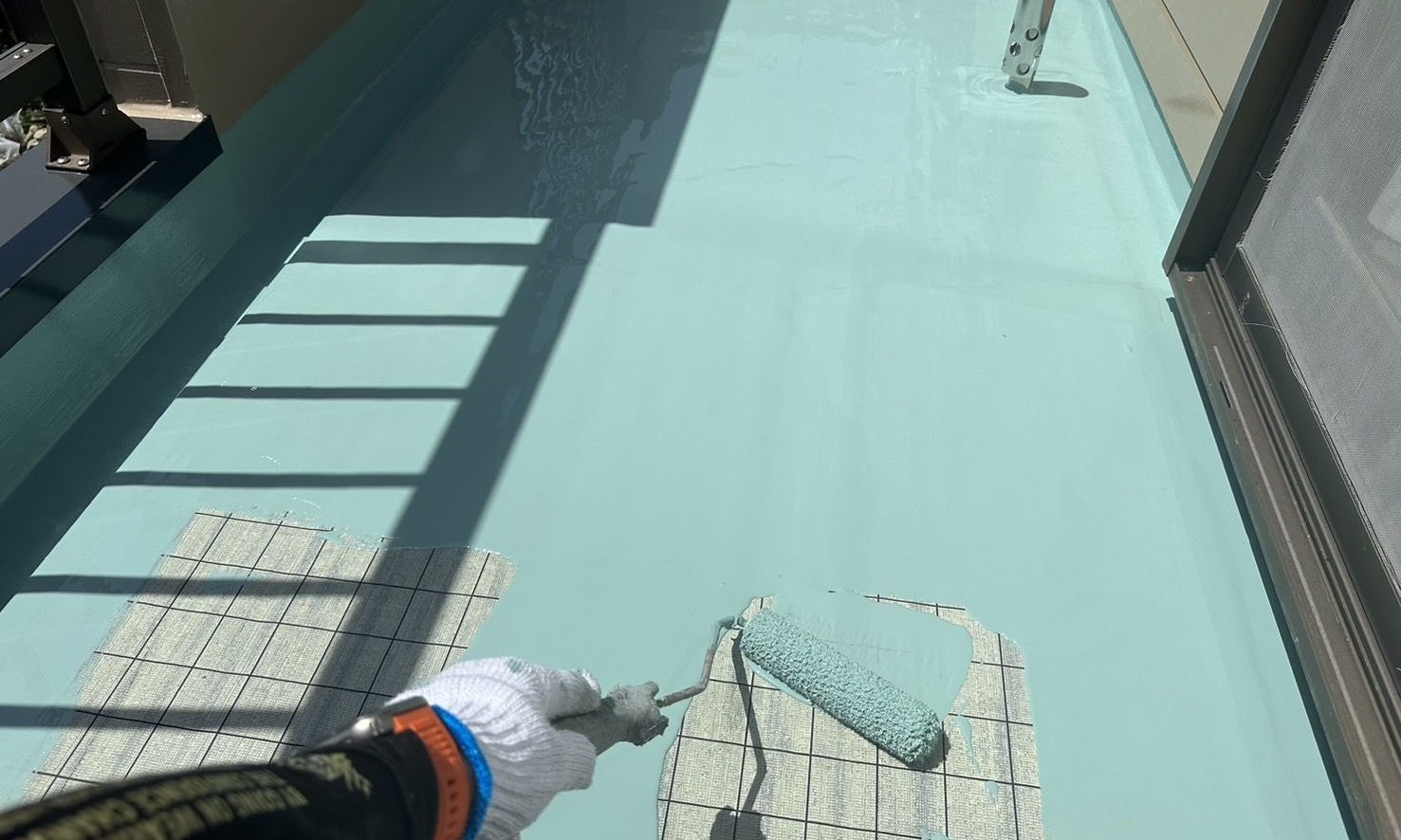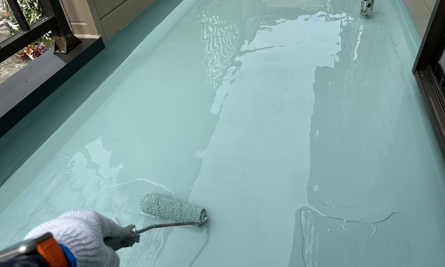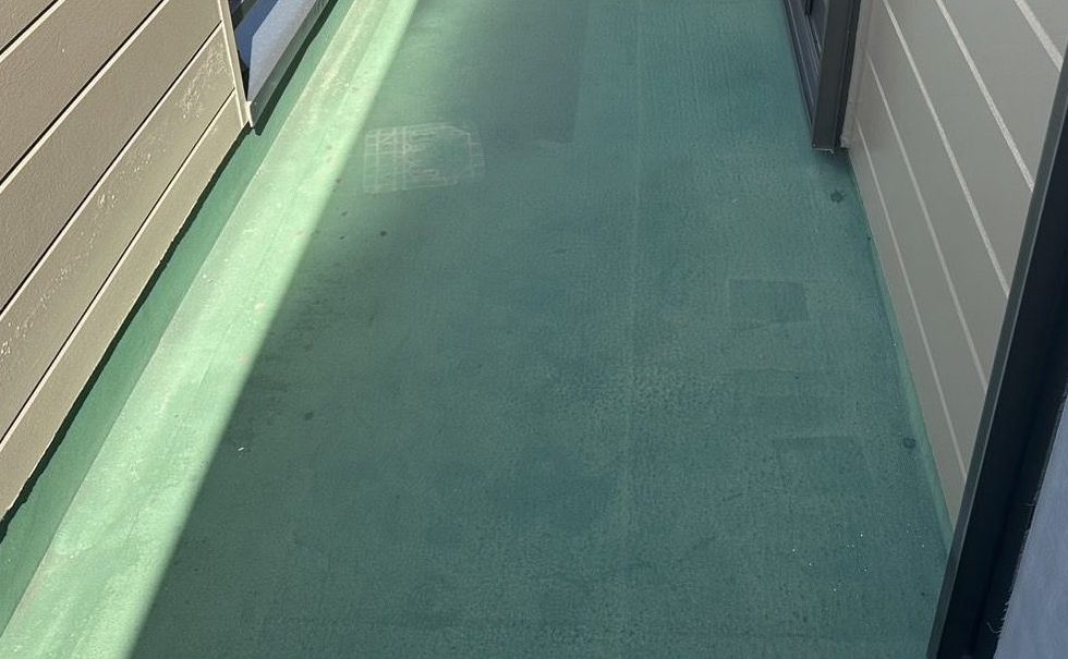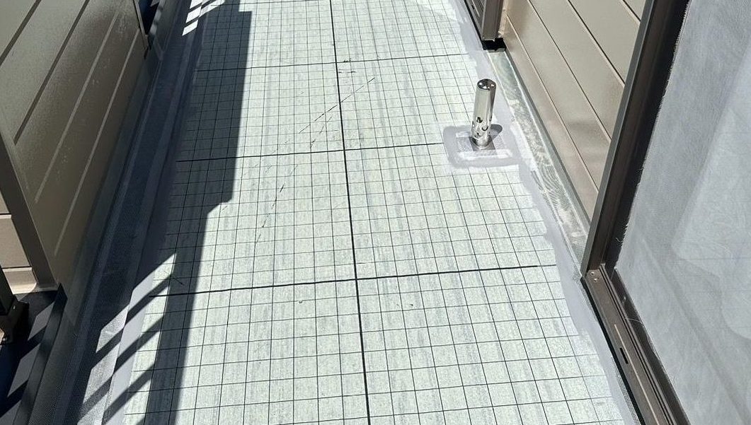 ベランダ部分にはウレタン防水通気緩衝工法を採用し、下地から防水層までしっかり施工することで、今後も安心してお住まいいただける状態に仕上げました。