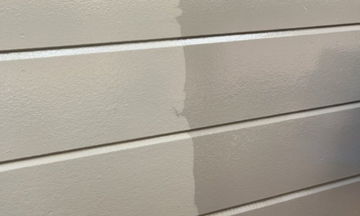 外壁はニューグレージュを採用いただき、柔らかいベージュ系の落ち着いた雰囲気に。クリヤートップコートで艶やかに仕上がったことで、新築時のような美しい外観が蘇りました。