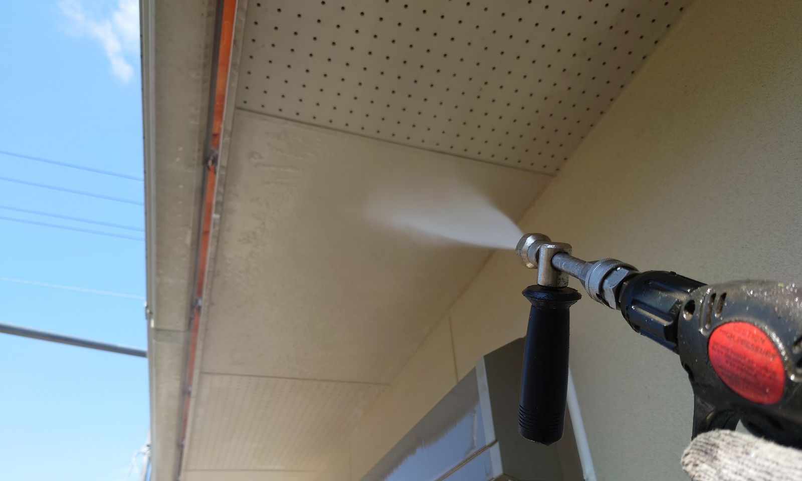 軒天 洗浄中