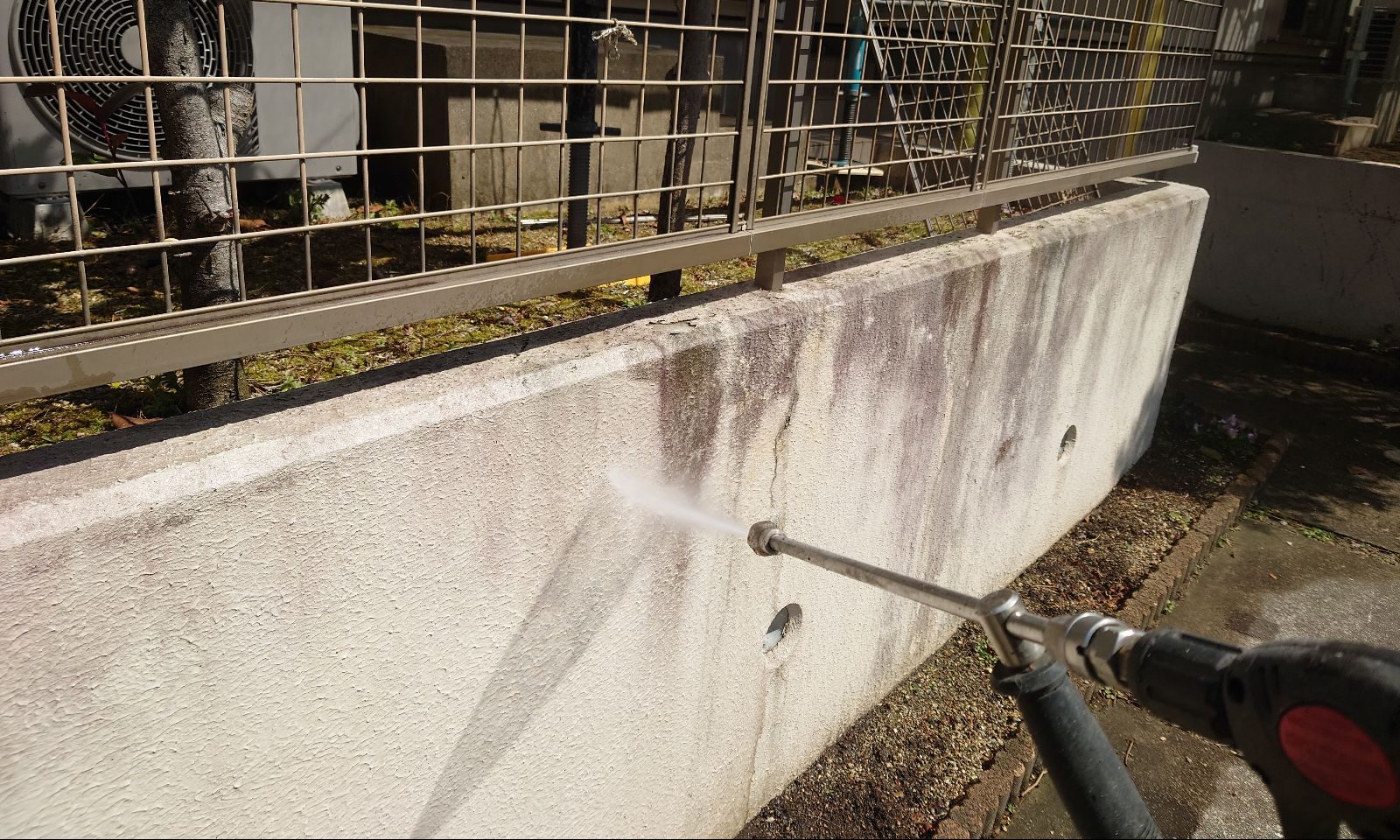 外塀 洗浄中