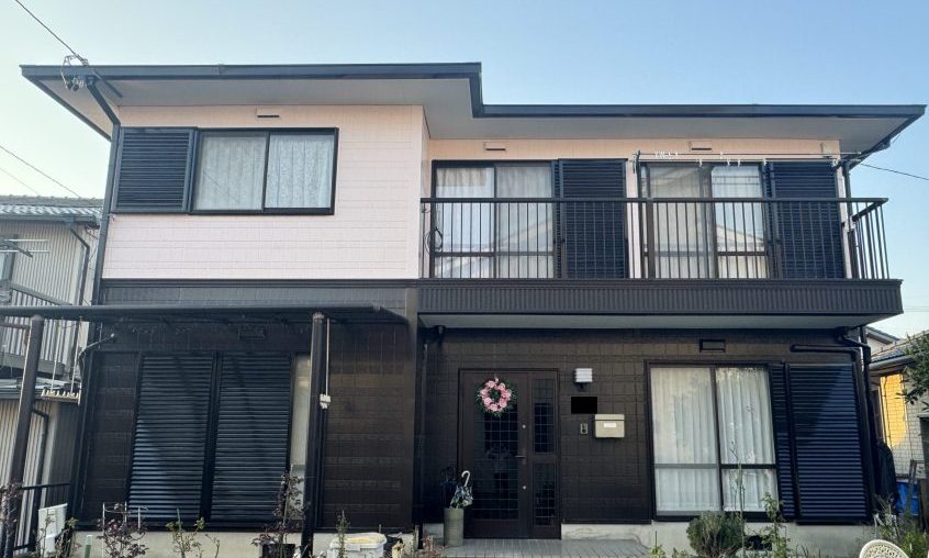 M様邸は築20年前後で、外壁サイディングや屋根カラーベストに経年による色あせが見られました。M様は家全体の印象を美しく保ちつつ、耐久性や遮熱性能にも配慮したメンテナンスを希望され、外壁・屋根の塗装工事とカーポート新設を検討されました。施工前には塗料や色のバランスについてサンプルを確認し、外壁は落ち着いたチョコレートをベースにアクセントとしてサクラと黒系を取り入れ、屋根はダークグレーで統一するプランをご提案したところ、ご納得いただきご依頼となりました。