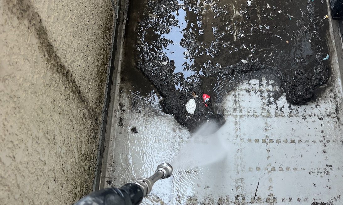 下地処理(高圧洗浄・埃除去・ケレン) 施工中