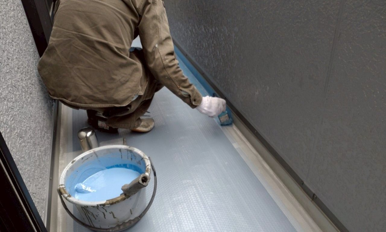 ウレタン防水材1層目 施工中