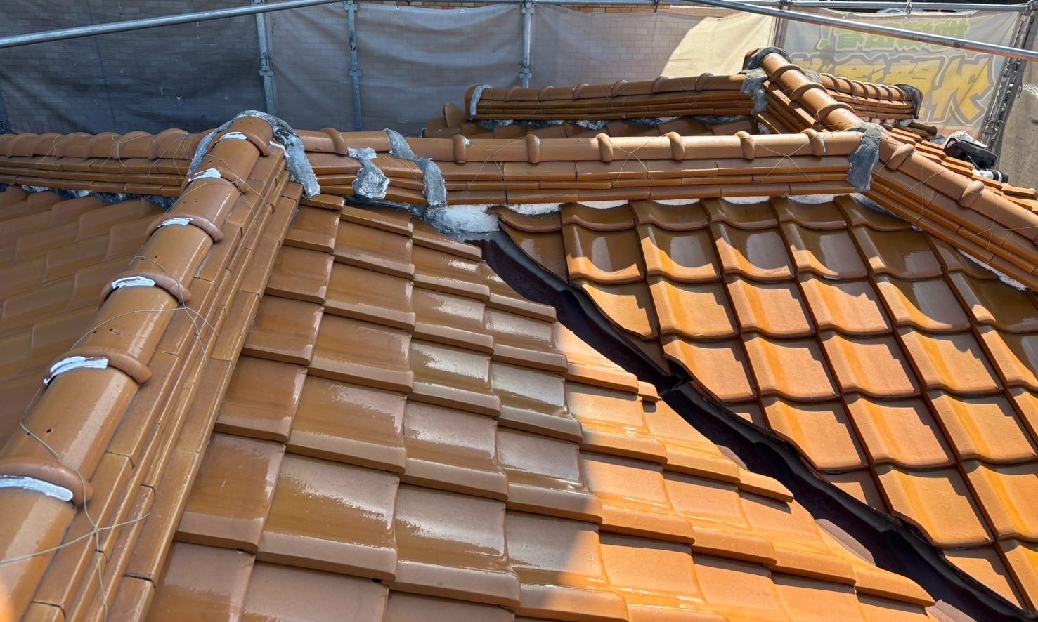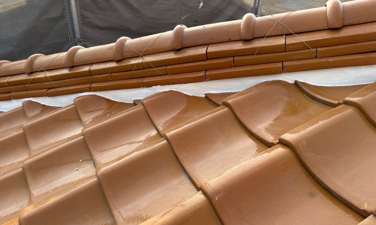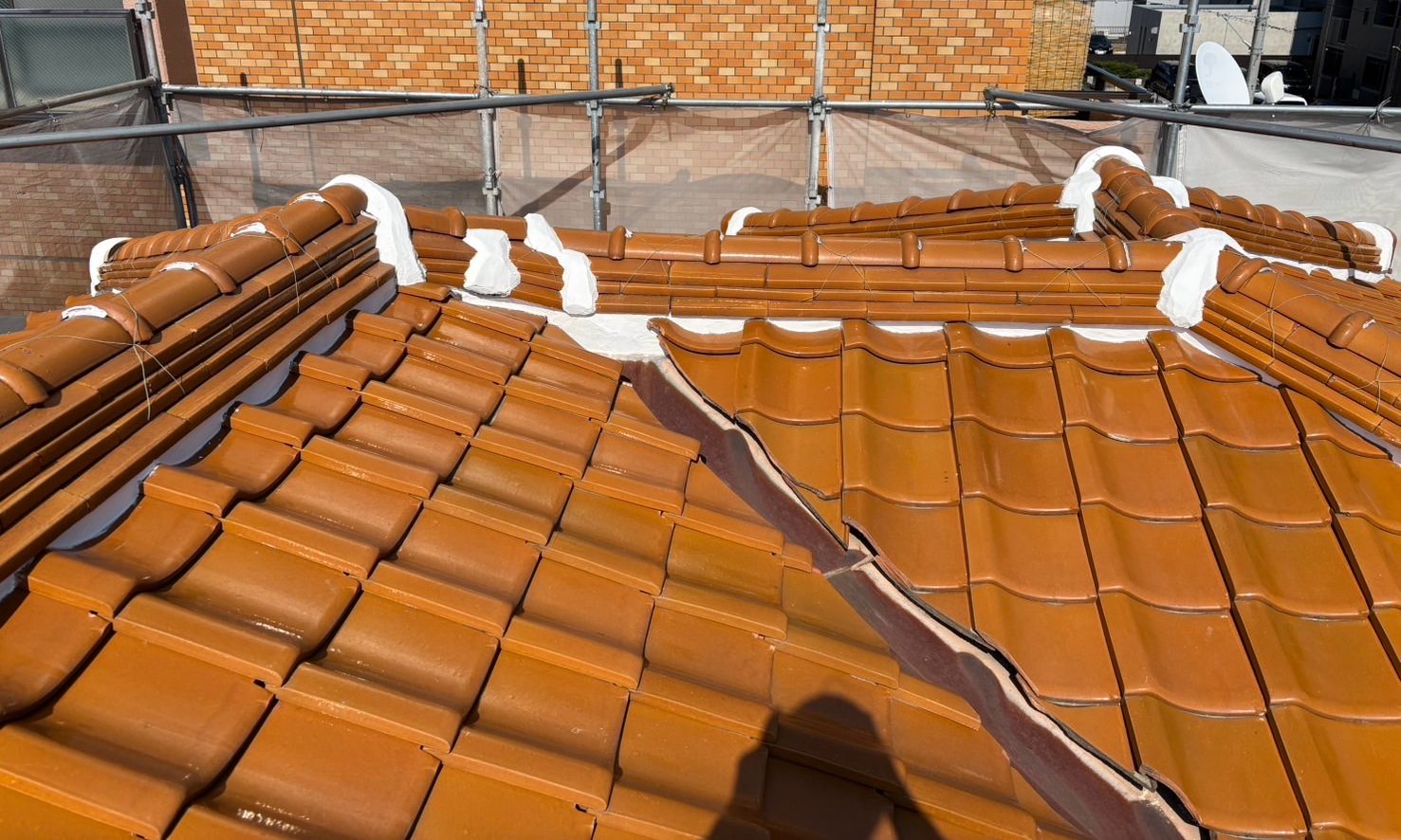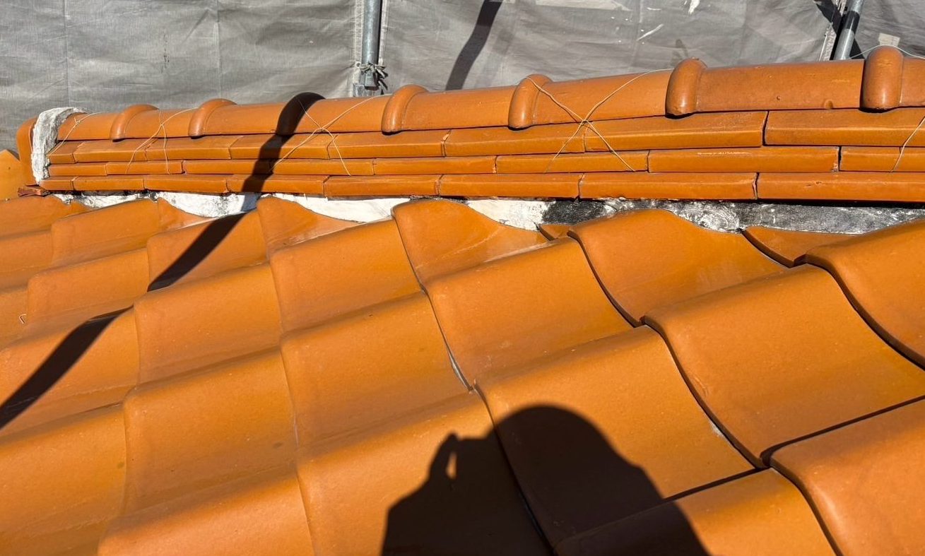 屋根の漆喰補修では、天候の変化を考慮しながら乾燥時間をしっかり確保し、品質を維持。