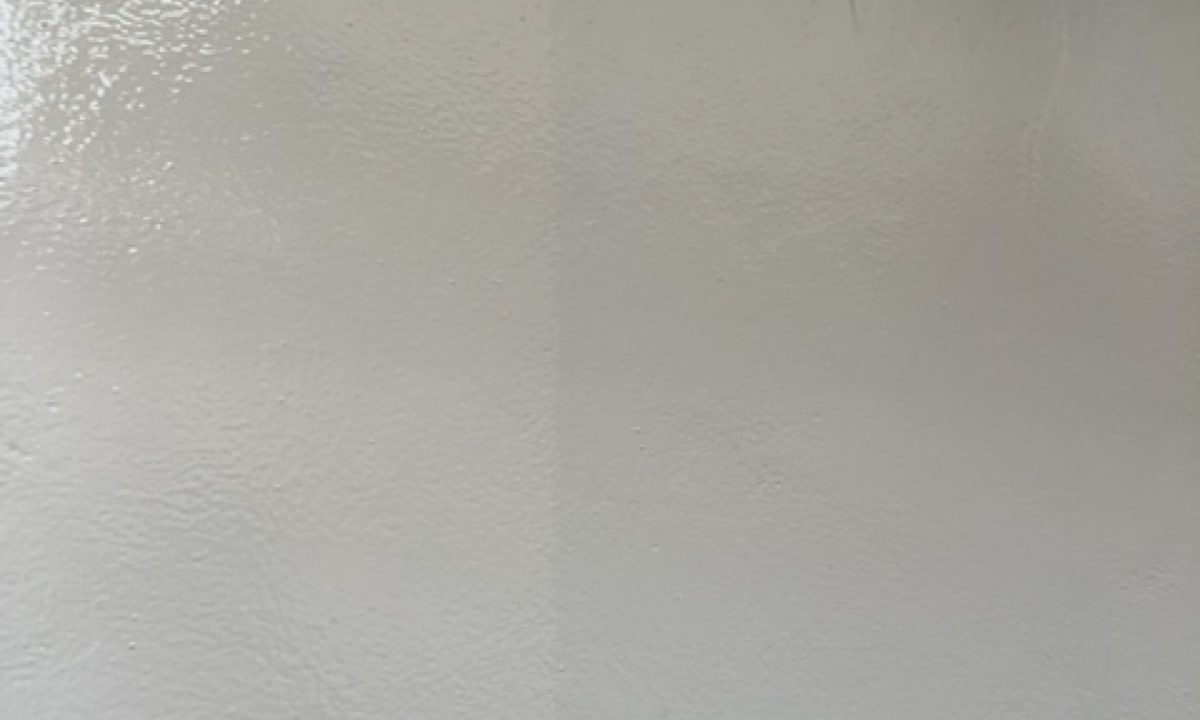 その後、ひび割れや劣化部分をしっかりと下地補修し、密着性を高めたうえで塗装作業へと進みました。