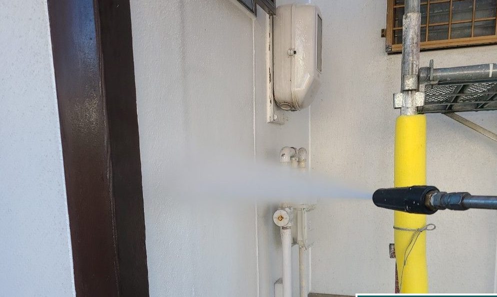 外壁 洗浄中