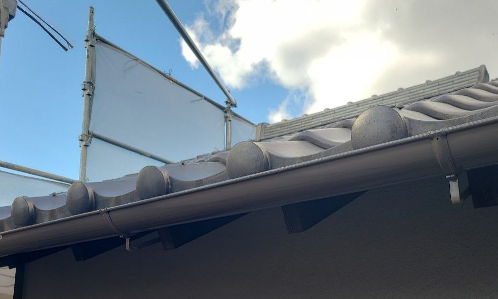 外壁塗装では、クラック部分を丁寧に補修した上で、ナノコンポジットW(グレー)を使用して高耐久・低汚染の仕上げとしました。屋根は瓦材を確認・補修し、耐久性の確保を行いました。