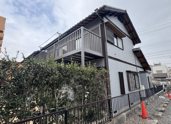 尾張旭市のN様邸は築30年を迎え、前回の外壁塗装から10年以上が経過していました。外壁の色あせや汚れ、チョーキング現象が確認され、塗装の保護効果が低下している状態でした。また、ベランダは生木を使用しており、雨風や紫外線の影響で腐食が進んでいました。お施主様は「今後はできるだけメンテナンスの手間がかからない仕様にしたい」とのご希望で、外壁塗装とあわせてベランダ交換工事も検討されていました。