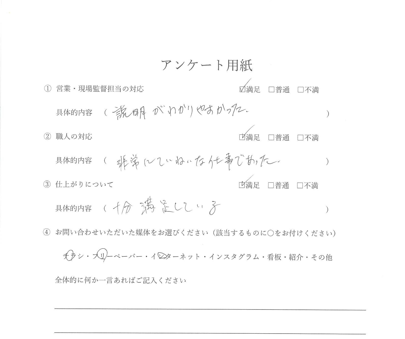 今回リメイクホームさんにお願いして、本当に良かったと感じています。営業の方、職人さん、皆さんが親切で対応も丁寧でした。これからも住まいのことで相談があれば、ぜひリメイクホームさんにお願いしたいと思います。ありがとうございました。
