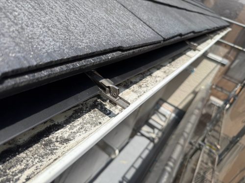 今回は外壁・屋根塗装だけでなく、付帯工事として軒先板金を施工しました。屋根からの雨水がしっかりと軒樋へ流れるよう施工精度に注意を払い、雨仕舞いを改善しました。