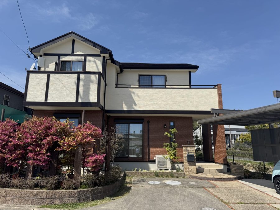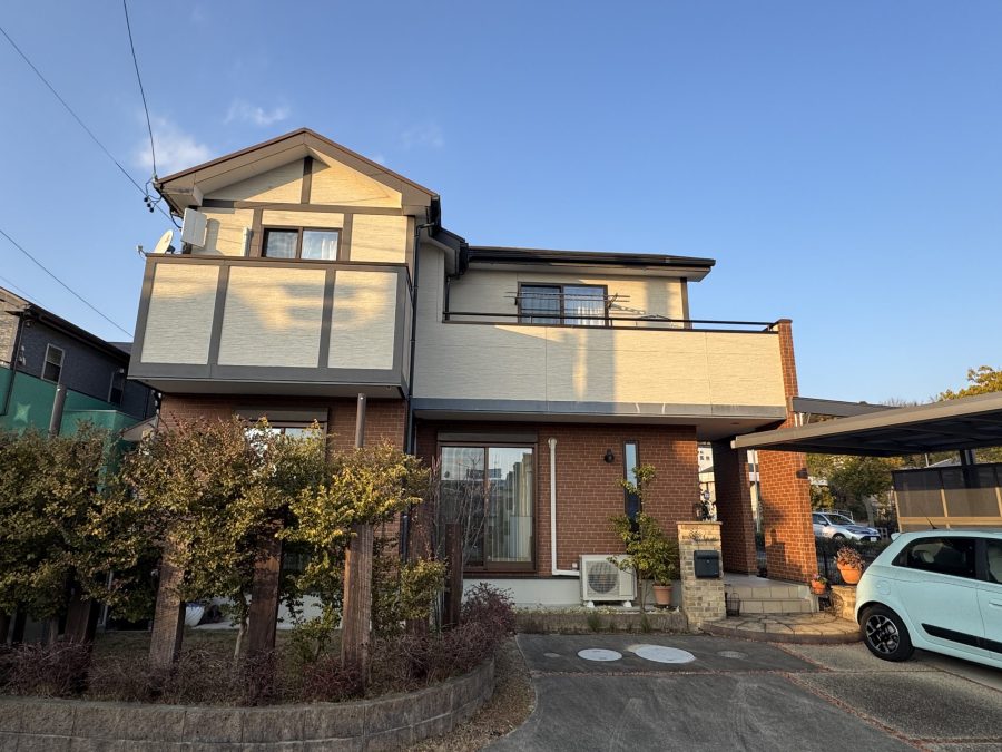 初回の現地調査の際には、劣化状況を丁寧にご説明させていただき、ご夫婦ともに非常に熱心にご質問をいただきました。最終的にリメイクホームにご依頼いただいた決め手は、無機塗料の高耐候性に魅力を感じたことと、対応の誠実さとのお言葉をいただきました。色決めでは、落ち着きのある「フレンチ」を外壁に、屋根には「コーヒーブラウン」をお選びいただき、全体的に上品で温かみのある印象に仕上がるようご提案いたしました。