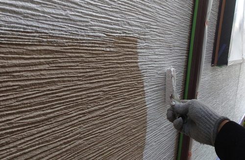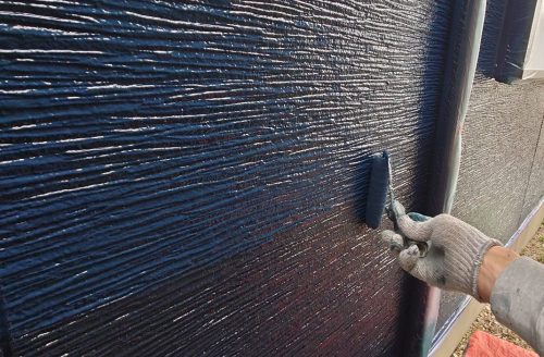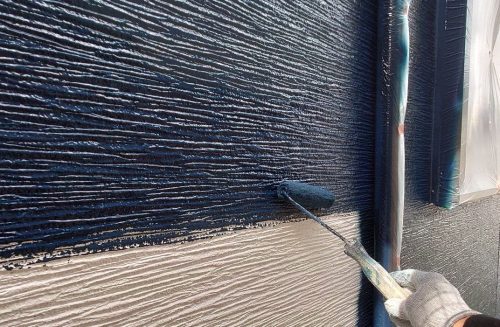 ナスコンの塗料は色の定着性がやや難しく、ムラや色むらが出やすいため、塗装作業中は特に注意して塗り重ねました。また、仕上げにクリア塗料を塗布する前には、外壁全体を丁寧にチェックし、塗り残しや色ムラ、下地の不具合がないかを入念に確認しました。この事前チェックにより、最終的な仕上がりが均一で美しくなるよう配慮しました。