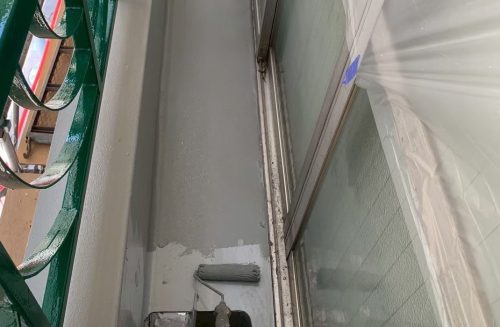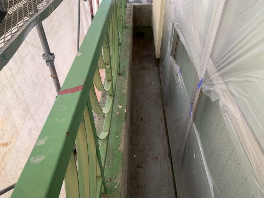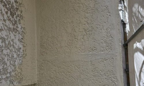 外壁塗装、ベランダ防水その他付帯塗装を行いました。又お客様ご自身で以前にシリコン補修をされていた箇所は、シーリング材が盛り上がっており、やや凹凸のある仕上がりになっていました。そのため、まず既存の補修部分を丁寧に撤去し、ひび割れ部分をVカットして下地処理を行いました。その後、左官補強によって下地を平滑に整え、強度を確保した上で塗装を実施しました。
