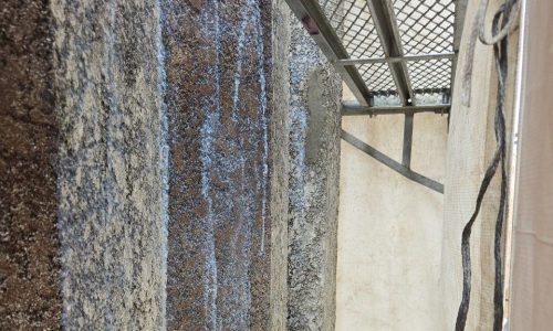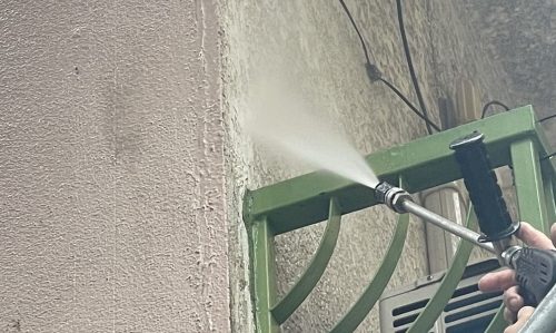 お住まいの外壁はモルタル仕上げで、経年による汚れや黒ずみが全体的に目立っている状態でした。特に日当たりや風通しの悪い面では、コケやカビの付着も見られ、外観の印象を損ねていました。また、ひび割れ(クラック)も数カ所確認され、お客様ご自身でコーキング材を使って補修されるなど、日頃から気にかけていらっしゃる様子でした。