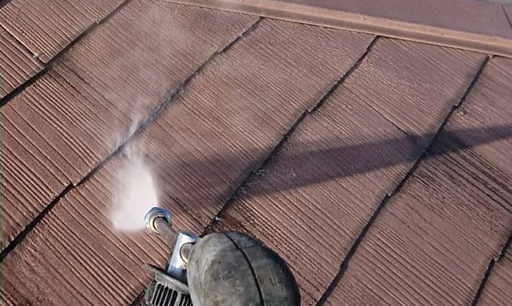 屋根 洗浄中