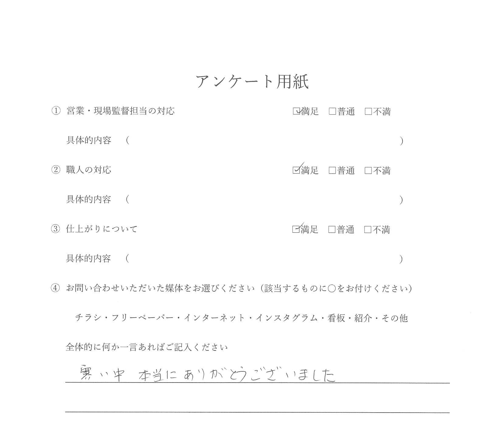 寒い季節の中での工事でしたが、快くご協力くださり感謝申し上げます。