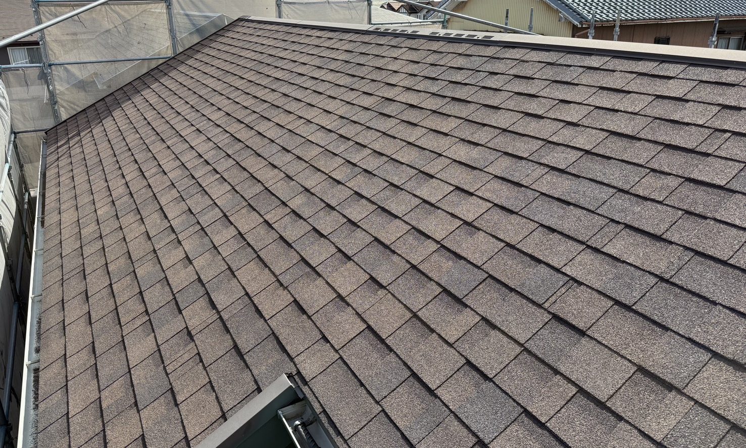 外壁はサイディング、屋根はアスファルトシングルで、コケの付着を気にしていたのですが、高圧洗浄をとても丁寧にしていただき、下地処理からしっかりと施工していただけたと思います。屋根は普段見ることができない場所なので、作業中の写真を送ってくださったのも安心できるポイントでした。