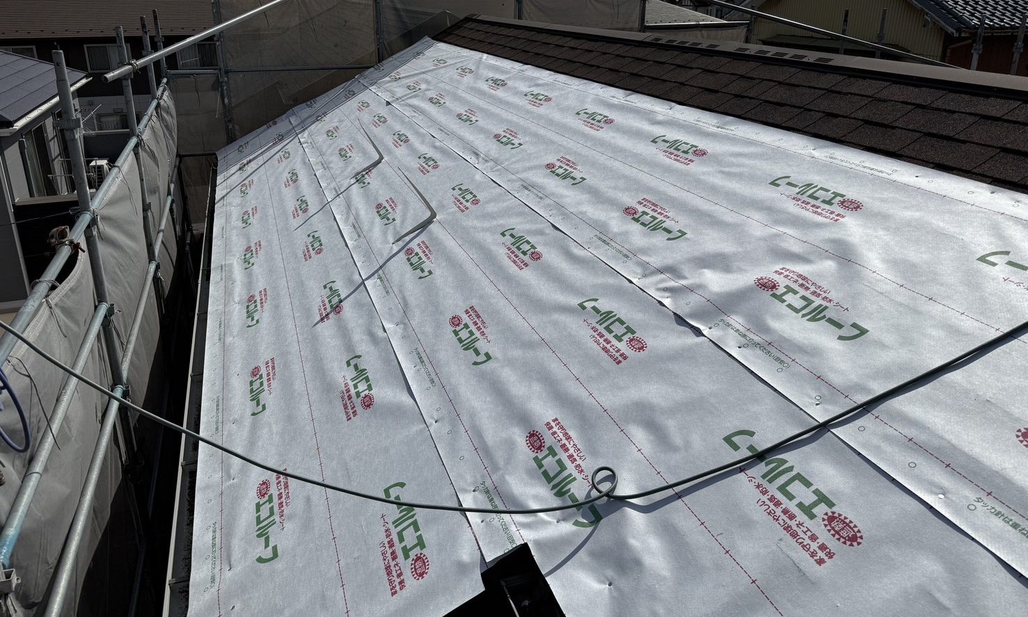 屋根下地の点検を行いながら作業を進め、耐久性・防水性を確保しています。施工中は写真を送信し、安心してご確認いただけるよう配慮しました。