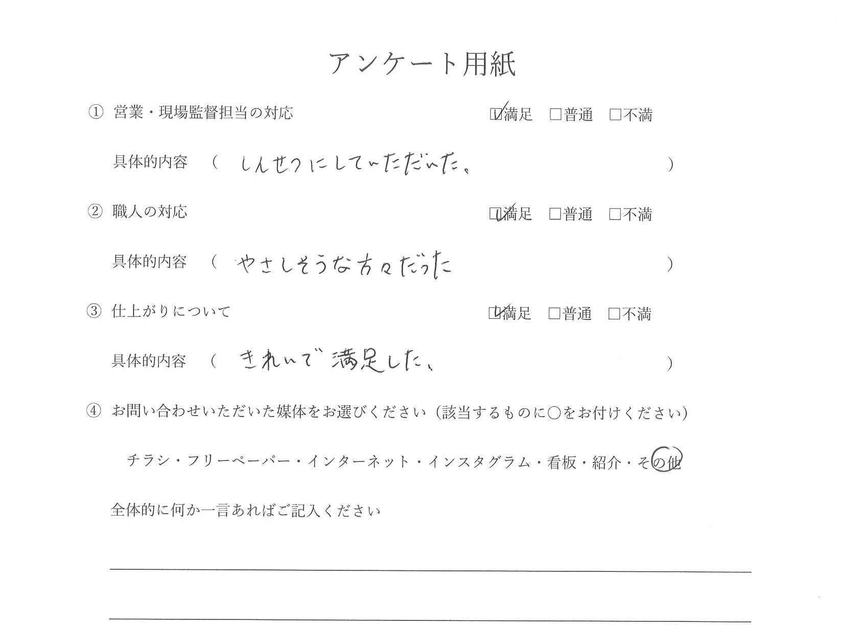 リメイクホームさんにお願いして本当に良かったです。担当の方も職人さんも皆さん優しくて丁寧で、終始安心してお任せできました。これからも点検などでお付き合いが続くのを楽しみにしています。