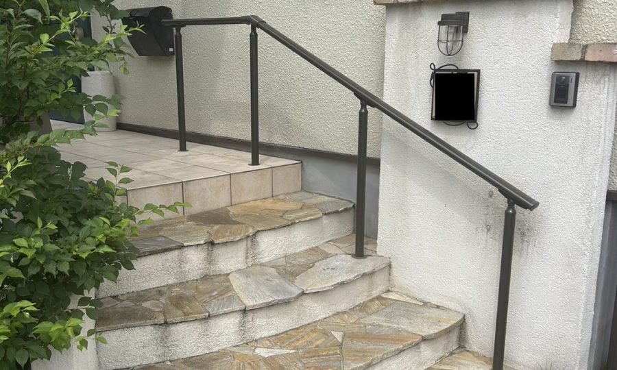 完成後、実際に手すりを使ってみると、見た目もすっきりしていて、後付けしたとは思えないほど建物の雰囲気になじんでいます。色味も外壁や玄関タイルと自然に調和していて、家全体の印象が引き締まりました。安全性が高まっただけでなく、見た目の美しさも両立できて大変満足しています。
