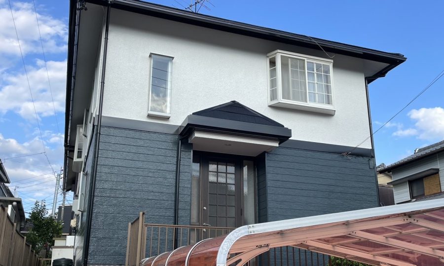 施工前は明るいトーンのツートンカラーでしたが、今回もツートンを採用しつつ、落ち着きのあるシックな雰囲気へと生まれ変わりました。外観の印象が大きく変わり、近隣の方からも「とても素敵になった」と好評でした。