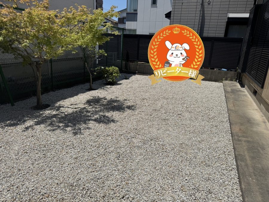 砂利の色も家に馴染んでおり、見た目もきれいで歩きやすく、雨の日も泥で汚れたりしないので助かっています。草取りの負担もほとんどなくなるとのことで、これから先のことを考えても本当に良い選択をしたと感じています。