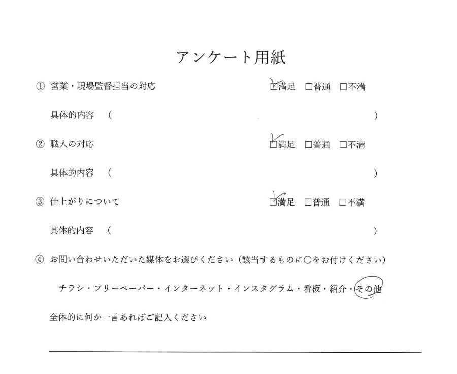 工事期間中も、職人の皆さまが細かい部分まで丁寧に作業してくださり、毎日安心してお任せすることができました。作業後の清掃もとても行き届いており、工事をしていただいたとは思えないほど綺麗に整えていただけた点も嬉しかったです。また、騒音や埃などへの配慮もしっかりしていただき、近隣への気遣いも徹底してくださっていました。今回のサッシ工事のおかげで、家の中がこれほどまでに快適になるとは正直想像以上でした。毎日の生活が変わり、心地よさが倍増しています。家族からもお願いして本当に良かったねという声があがっており、改めてリメイクホームさんにお願いして良かったと実感しております。これからも、家に関する相談事が出てきた際には、ぜひリメイクホームさんにお願いしたいと思っております。本当にありがとうございました。今後ともどうぞよろしくお願いいたします。
