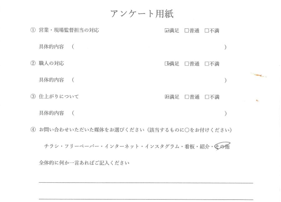 営業の方、現場監督、職人さん、すべての方が丁寧で誠実で、工事全体を通して安心して任せることができました。リメイクホームさんにお願いして本当に良かったと思っています。これからも家のことを相談する時は、ぜひまたお願いしたいと思っています。
