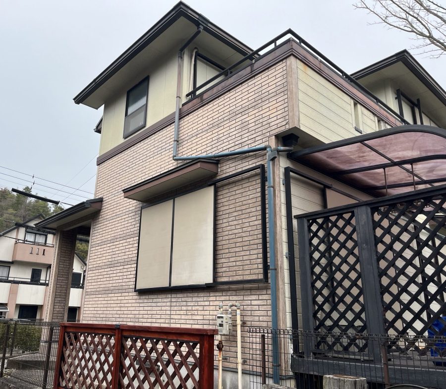近隣で当社が塗装工事を行っていた際、築20年を迎えて一度も塗装をされていなかったK様邸の外観を拝見し、劣化状況の点検をご提案しました。現地調査では外壁の退色やシーリングの劣化だけでなく、ベランダ床材の腐食も深刻で、このままでは下地や構造体に影響が及ぶ可能性がありました。早期対応の必要性をお伝えしたことが工事のご依頼につながりました。