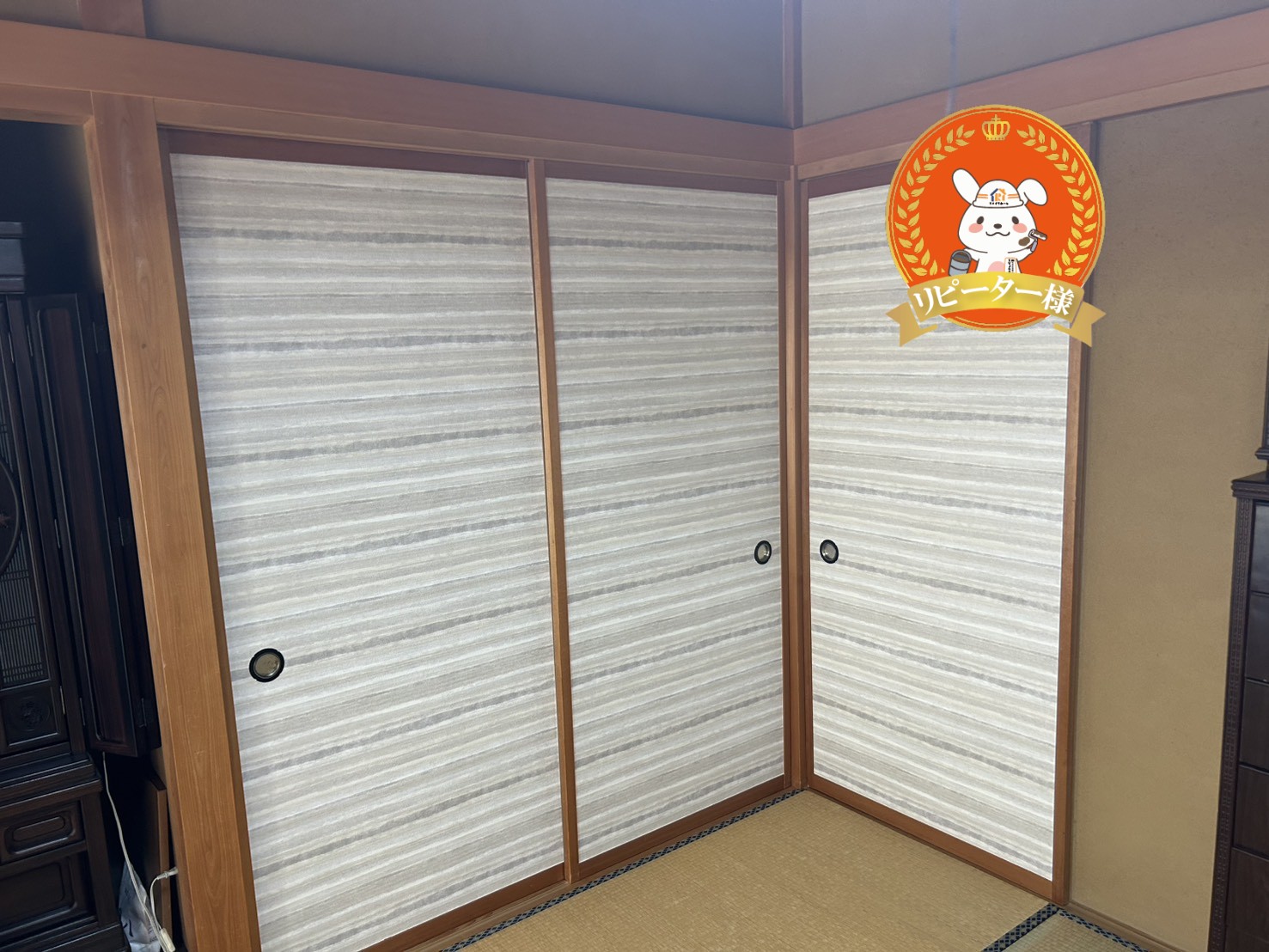 襖は新しく張り替えていただいたことで、和室全体が明るくなりました。柄も落ち着いていて品があり、昔からある建具とも違和感なく馴染んでいます。仕上がりを見たときは「もっと早くお願いすれば良かった」と心の底から思いました。
