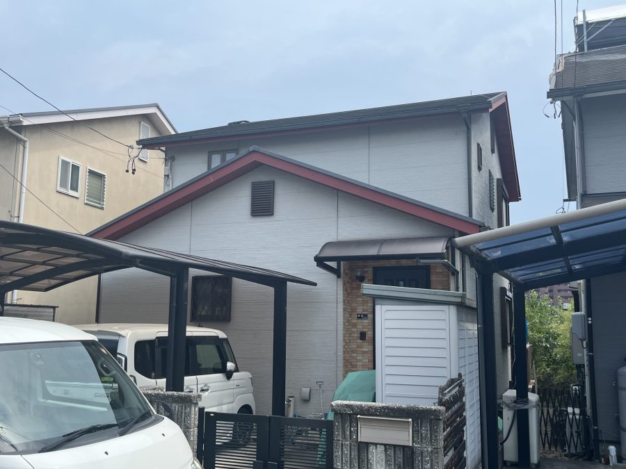 外壁の反りやひび割れが見られたため、補修をしっかり行った上で塗装を施工しました。