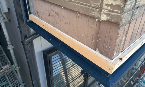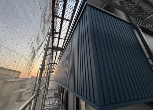 あわせて、腐食が見られたベランダの外壁部分には板金補修を行い、見た目と耐久性の両面が改善されるよう仕上げています。全体を通して、安全管理に十分配慮しながら丁寧に工事を進めました。