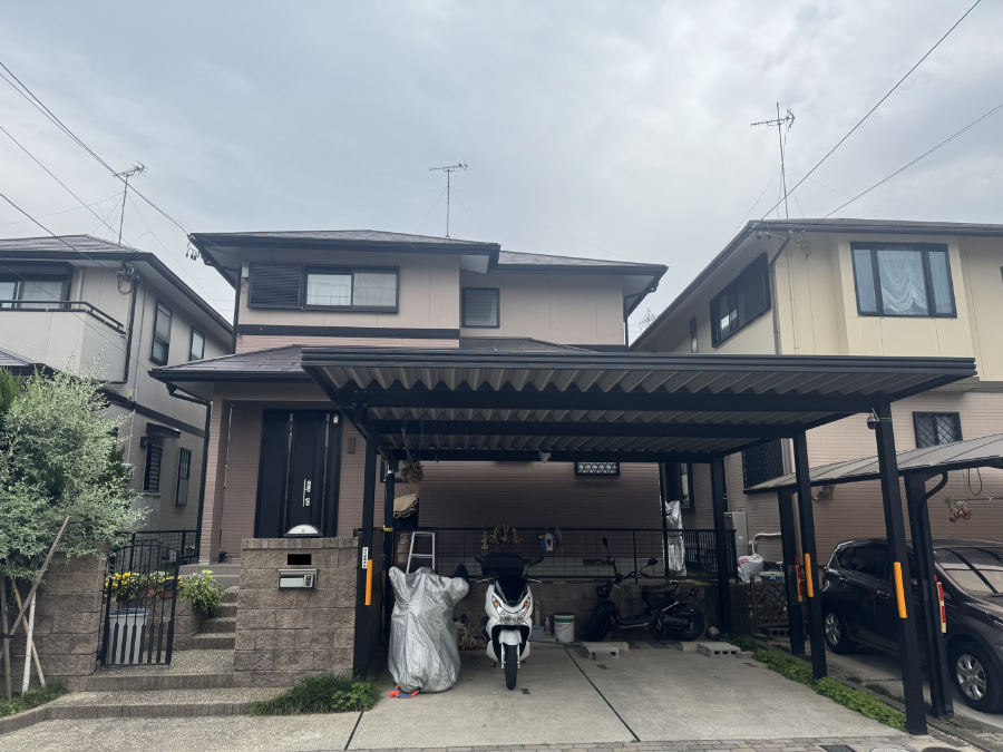 前回の外壁塗装から年数が経過し、外壁の色褪せや汚れが気になるようになったことから、再塗装をご検討されていたそうです。建物全体の美観を整えると同時に、これからも長く快適に住むために、今回リメイクホームへご依頼をいただきました。
