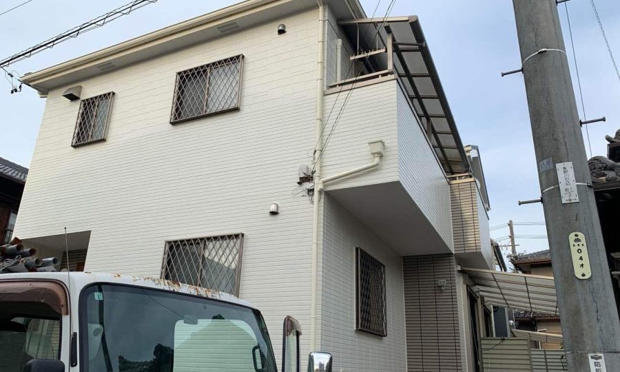 施工前はツートンカラーのお住まいでしたが、施工後は優しいクリーム色のワントーンで統一し、屋根は落ち着いたグリーンで仕上げました。