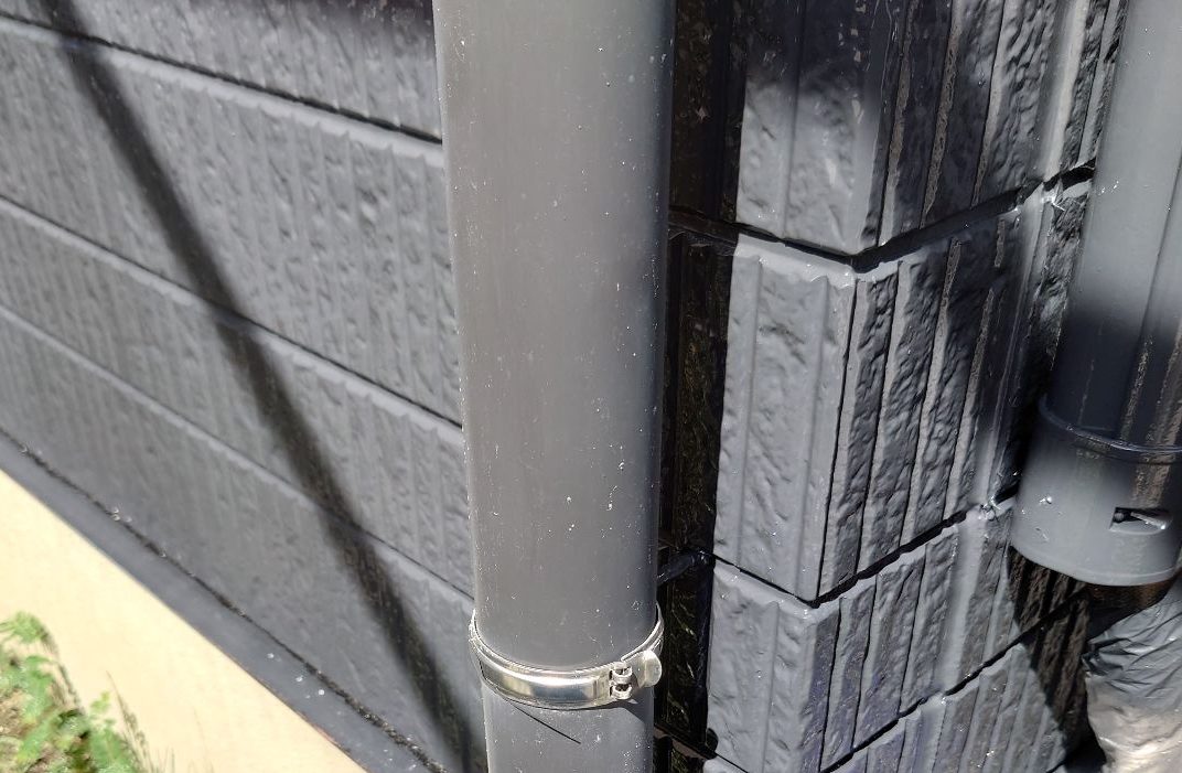 外壁はダークグレーで落ち着いた雰囲気に仕上げ、建物全体に重厚感とスタイリッシュさが生まれました。また、帯部分にはアクセントカラーとしてブラックを採用したことで外壁とのコントラストがより際立ち、全体のデザインに引き締まった印象を与えています。色の組み合わせによって輪郭が強調され、モダンでカッコイイ外観へと大きくイメージチェンジすることができました。シンプルでありながら、細部にこだわりの感じられる上質な佇まいとなっています。