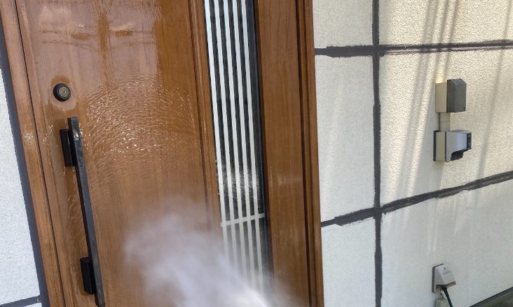 外壁の汚れを丁寧に落とし、塗膜の密着性を高めます。
