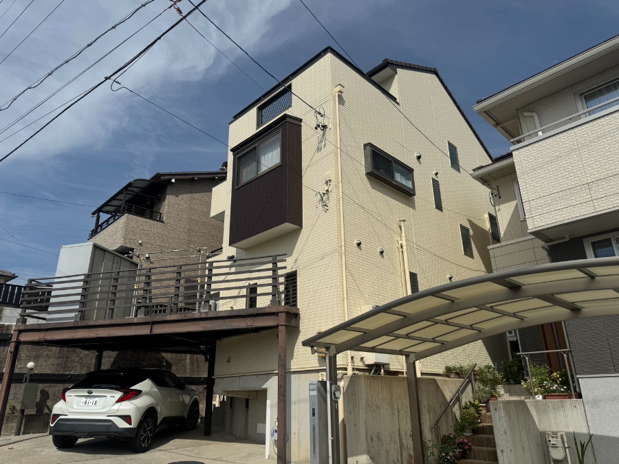 施工前は外壁の色あせや劣化が目立ちましたが、塗装後はバニラとビターブラウンのツートンカラーで建物全体が明るく、そして落ち着いた印象に仕上がりました。外観が新築のようにリフレッシュされ、周囲からの印象も大きく変わったと思います。