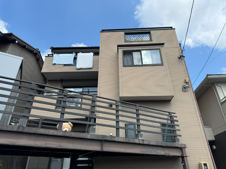 この度は、私たちの自宅の外壁塗装およびベランダ防水工事を施工していただき誠にありがとうございました。今回の工事は、長年気になっていた外壁の色あせや細かなひび割れ、さらにベランダの防水劣化が目立ってきたこともあり、そろそろしっかりとメンテナンスをしなければと考えていた中で御社の存在を知ったことがきっかけでした。毎月届く地域の情報誌や広告の中で、御社のチラシはとても丁寧で信頼感があり、まずは話だけでも聞いてみようとお問い合わせをさせていただきました。お問い合わせ後、すぐに現地調査の日程を調整していただき、実際に来ていただいた際には、建物の状態を細部まで丁寧に確認していただきました。外壁の状況やシーリングの劣化、ベランダ防水の状態などを写真とともに分かりやすく説明してくださり、素人の私たちでも理解できるようかみ砕いて説明してくださったことがとても印象に残っています。また、ただ傷んでいるから交換しなければいけないというような一方的な提案ではなく、現状はこういう状態で今後どうなる可能性があるのか、メンテナンスをすることでどんな良い効果があるのかなど、具体的かつ将来を見据えたアドバイスをいただけたことで安心してお任せしたいという気持ちが強くなりました。