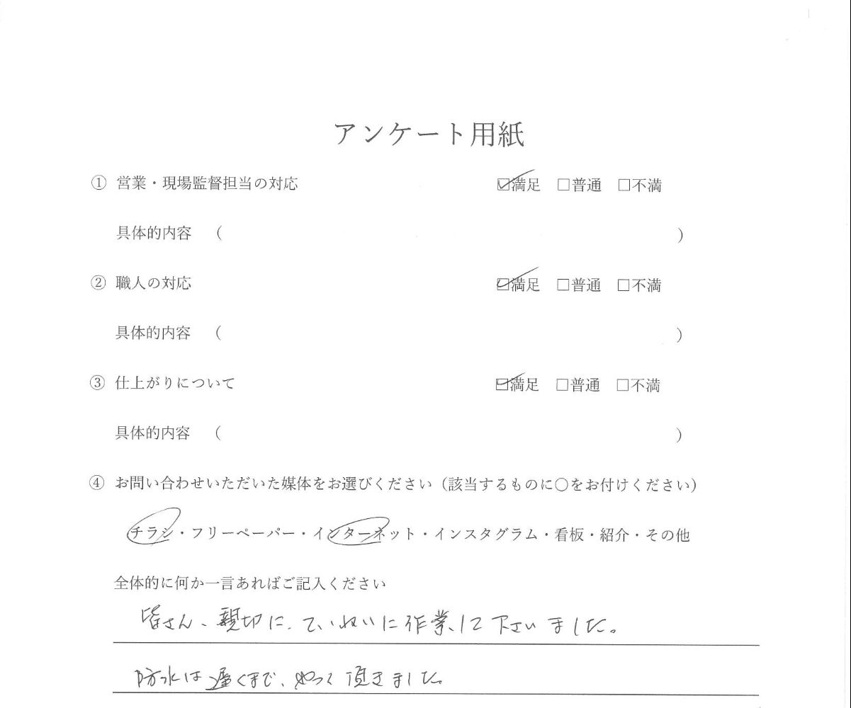 防水工事では、遅い時間まで作業をしてくださった日もあり、その姿勢には本当に頭が下がる思いでした。