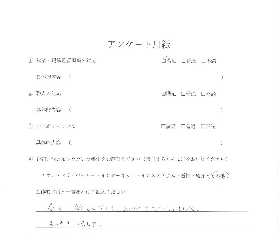 我が家の庭木伐採およびフェンス新設工事において、大変お世話になり、誠にありがとうございました。