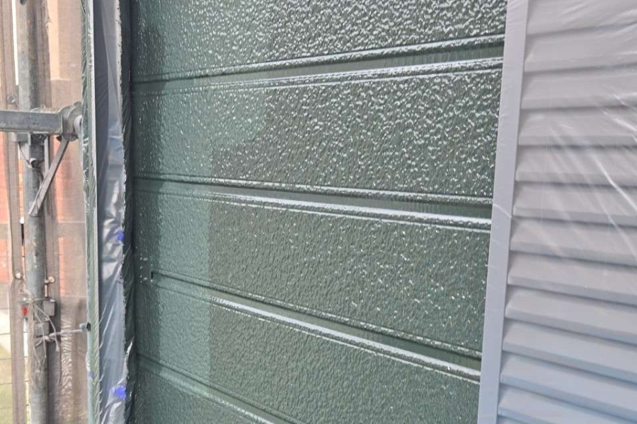 また、外壁の苔を気にされていたため、緑系のカラーを採用しましたが、建物全体との相性も良く、とてもかっこいい印象に仕上がりました。