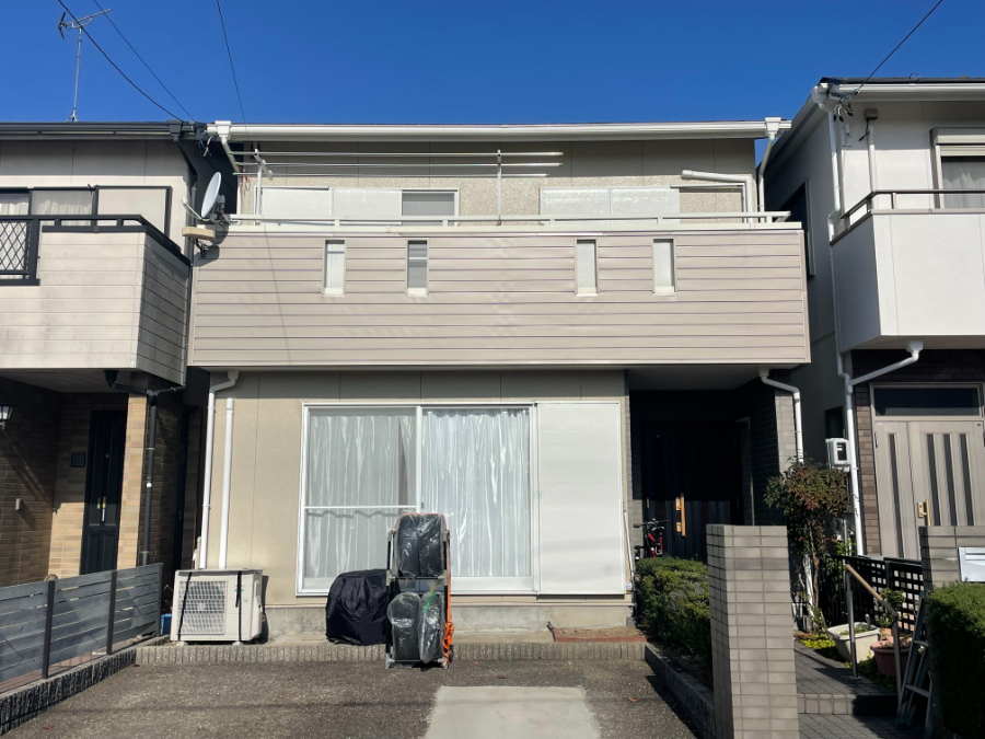南向きの立地で日当たりが良い分、長年受け続けた紫外線の影響により外壁の色褪せが徐々に目立つようになっていました。外観の印象が気になり始め、そろそろ外装工事を検討しなければと感じておられたタイミングで、弊社がご訪問させていただきました。その際に外壁の現状についてご相談をいただき、建物の状態や今後必要となるメンテナンスについてご説明したことが、今回工事をご依頼いただくきっかけとなりました。