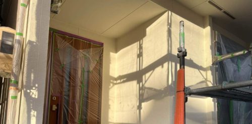 今回の工事では、仕上がりの美しさはもちろん、建物の耐久性を長く保つことを特に意識して施工を行いました。外壁は下地の状態をしっかりと確認し、劣化部分を丁寧に補修したうえで塗装を実施しています。ジョリパットフレッシュ∞の風合いを活かすため、塗りムラが出ないよう工程ごとに確認を行い均一な仕上がりを心がけました。屋根工事では、既存屋根の状態を十分に確認し、スーパーガルテクトの施工手順を厳守することで防水性・耐久性を最大限に発揮できるよう注意しています。また、FRP防水工事や付帯部分の施工についても、細部まで丁寧に仕上げることで建物全体のバランスと安全性を高めました。工事期間中は、近隣への配慮や現場の整理整頓を徹底し、お客様に安心して工事をお任せいただける環境づくりを心がけています。